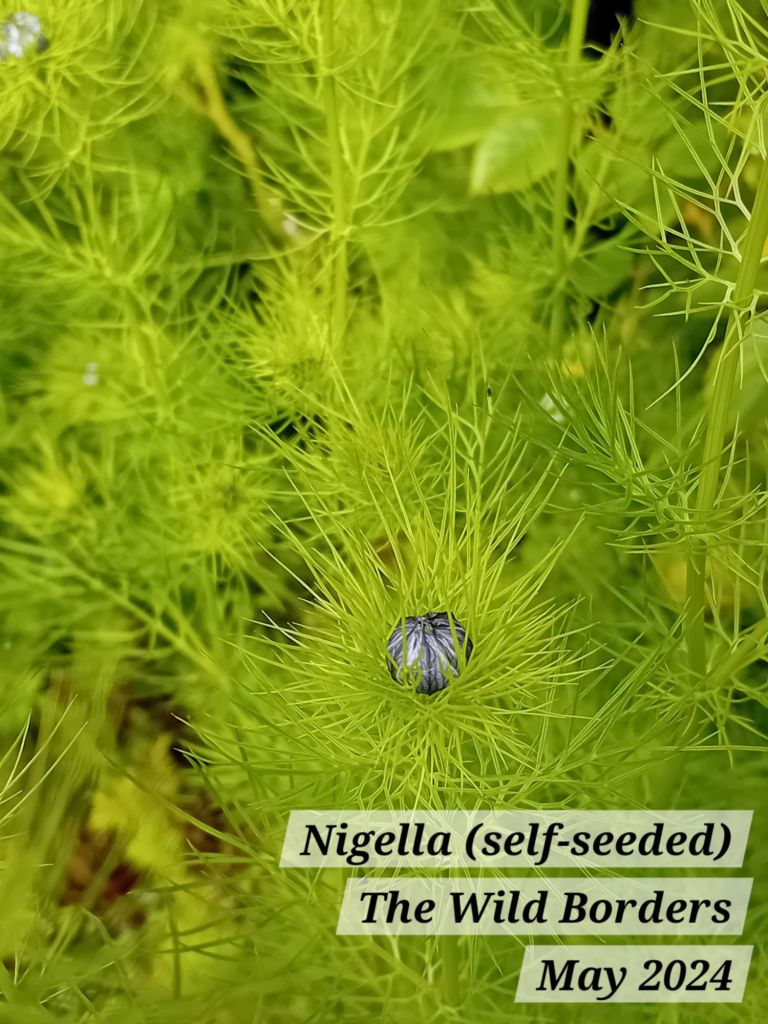 Throughout the border we also have self-seeded nigella, which has just started to bud; we should probably start to see the flowers towards the end of May into June, which I remember looking so pretty last year. Before it even flowers, I love the texture of its foliage: