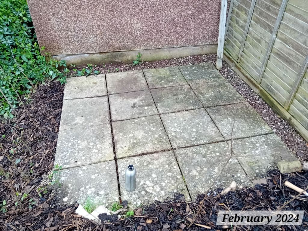 The top area has a small patio on the left hand side, which I have mostly just been maintaining by weeding every so often. The gaps between the paving slabs need repointing in the future.
