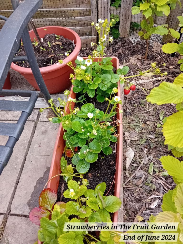 I placed the fruit trees in the patio area, along with the strawberry plants I bought this year and wrote a post about. It has already been really nice coming out during the day, sitting in the area and then eating some strawberries!