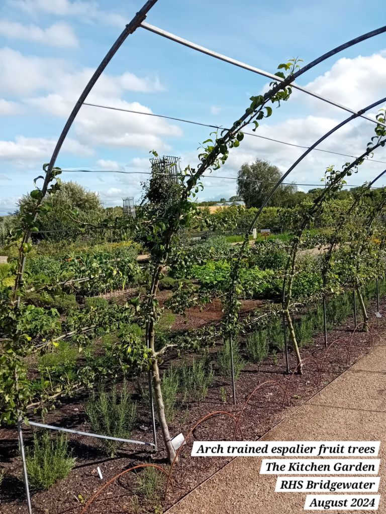 I also plan on installing an archway to create an entrance to the patio area in The Fruit Garden. I will grow the apple trees as espaliers up over the archway, which will look really nice, keep their size well contained and also increase their production. The photo below is the inspiration from the archways seen at RHS Bridgewater. I will obviously be doing this at home on a much smaller scale: