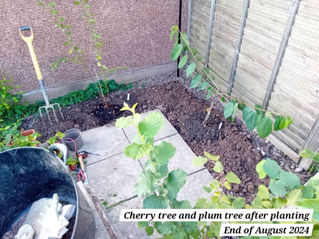 The ‘Sylvia’ cherry tree looks to have taken really well (see below) and I gave it an initial pruning after planting, but I will wait until next Spring until I do any further pruning because now isn’t the right time.