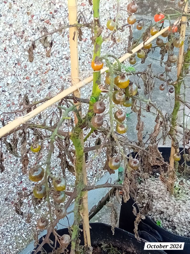 Despite sowing and planting out my cherry tomatoes rather late this year, I had a great harvest, but all good things must come to an end eventually. The recent drop in temperature finally hit the remaining tomatoes that were left outside, so the Mr and I cleared up the area this weekend: