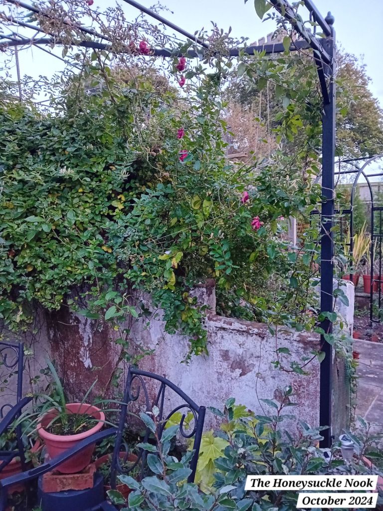 Other small jobs I have been doing have included training the honeysuckle to cover the sides of the pergola in The Honeysuckle Nook. I have used simple twine to create a soft support structure that the honeysuckle and rambling rose will grow over in time to fully enclose the seating area. Eventually, the twine will decompose and the honeysuckle and rose will support themselves as they mature: