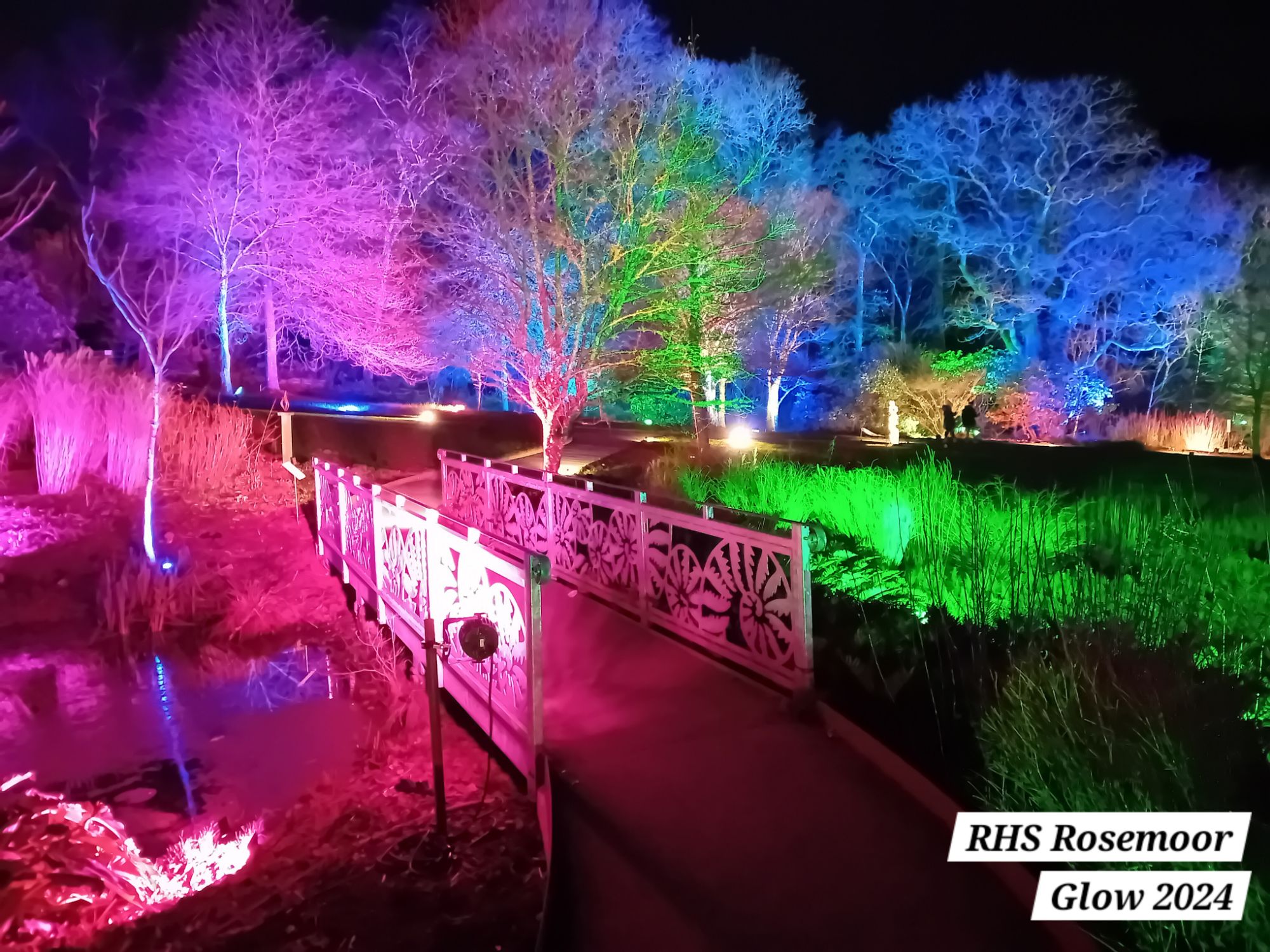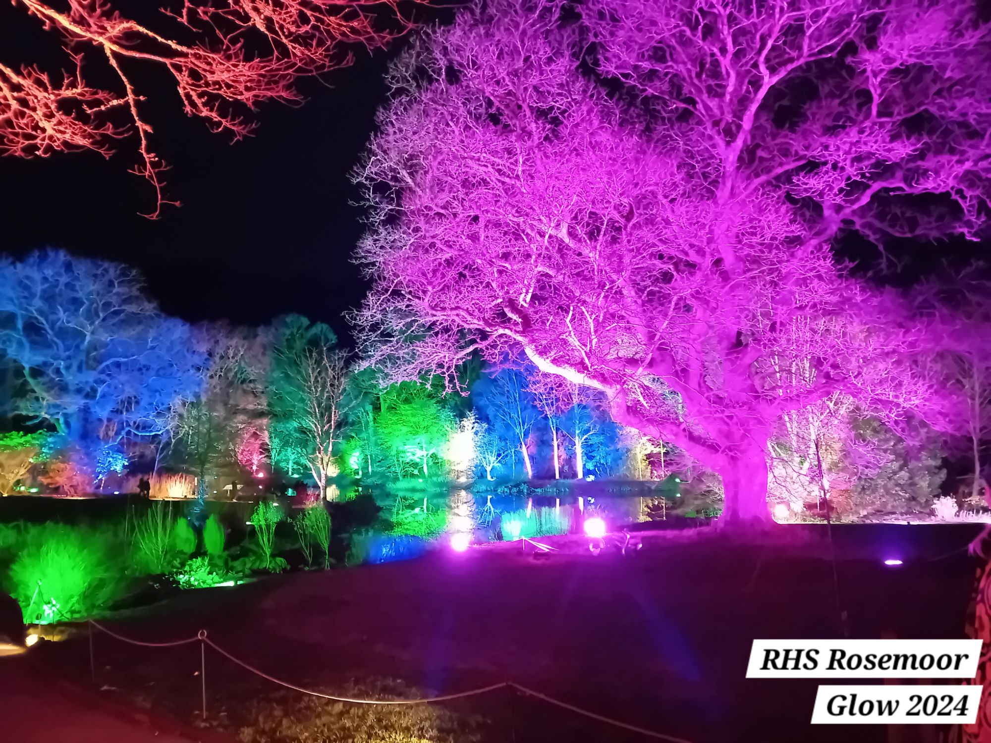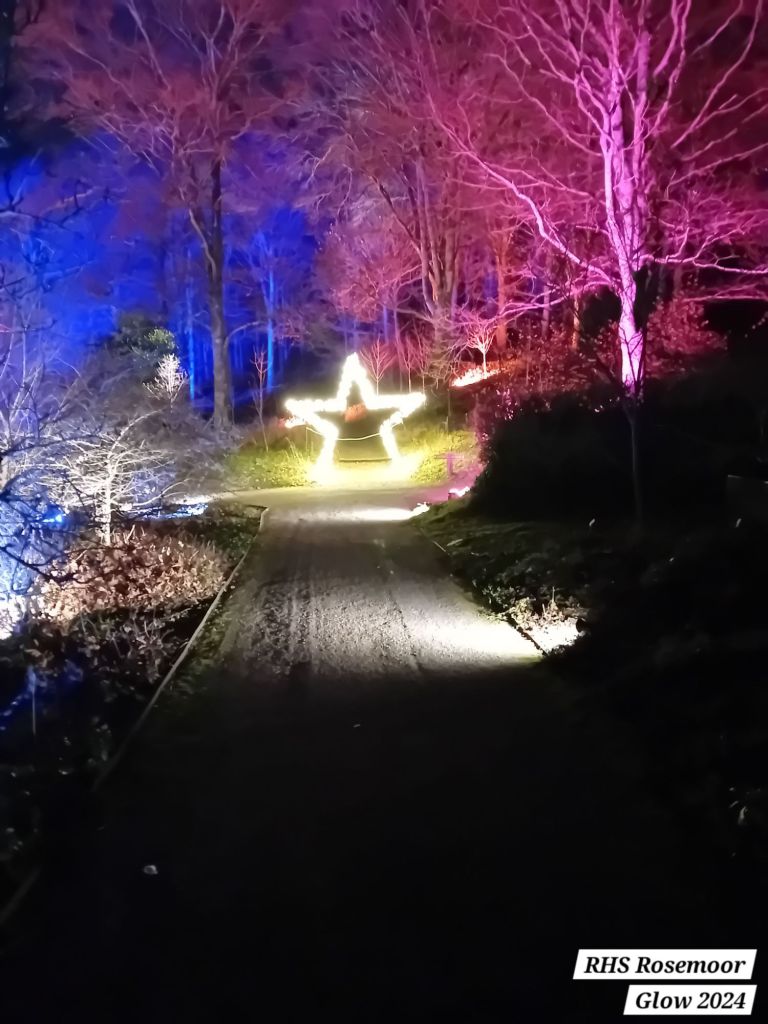 You can watch video footage of the Glow light display on my Facebook page: RHS Rosemoor Christmas reel (Don’t forget to unmute the video in the top right of the video screen!)