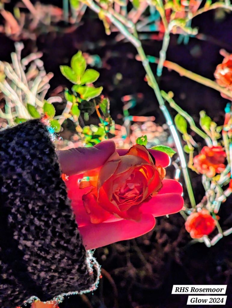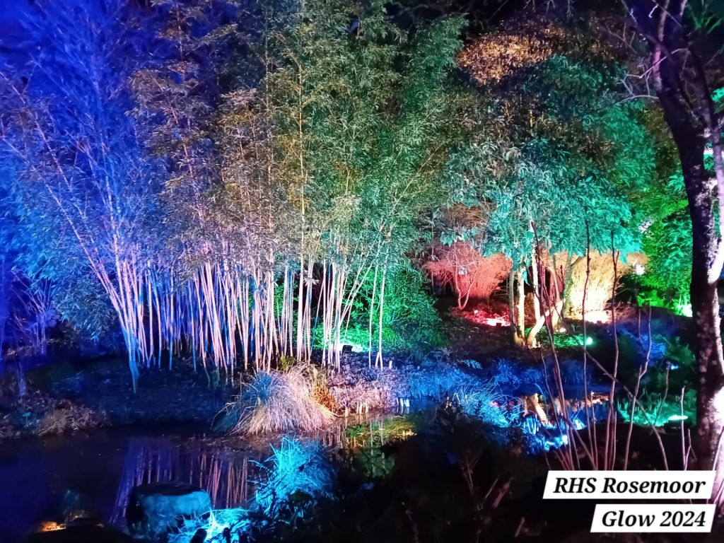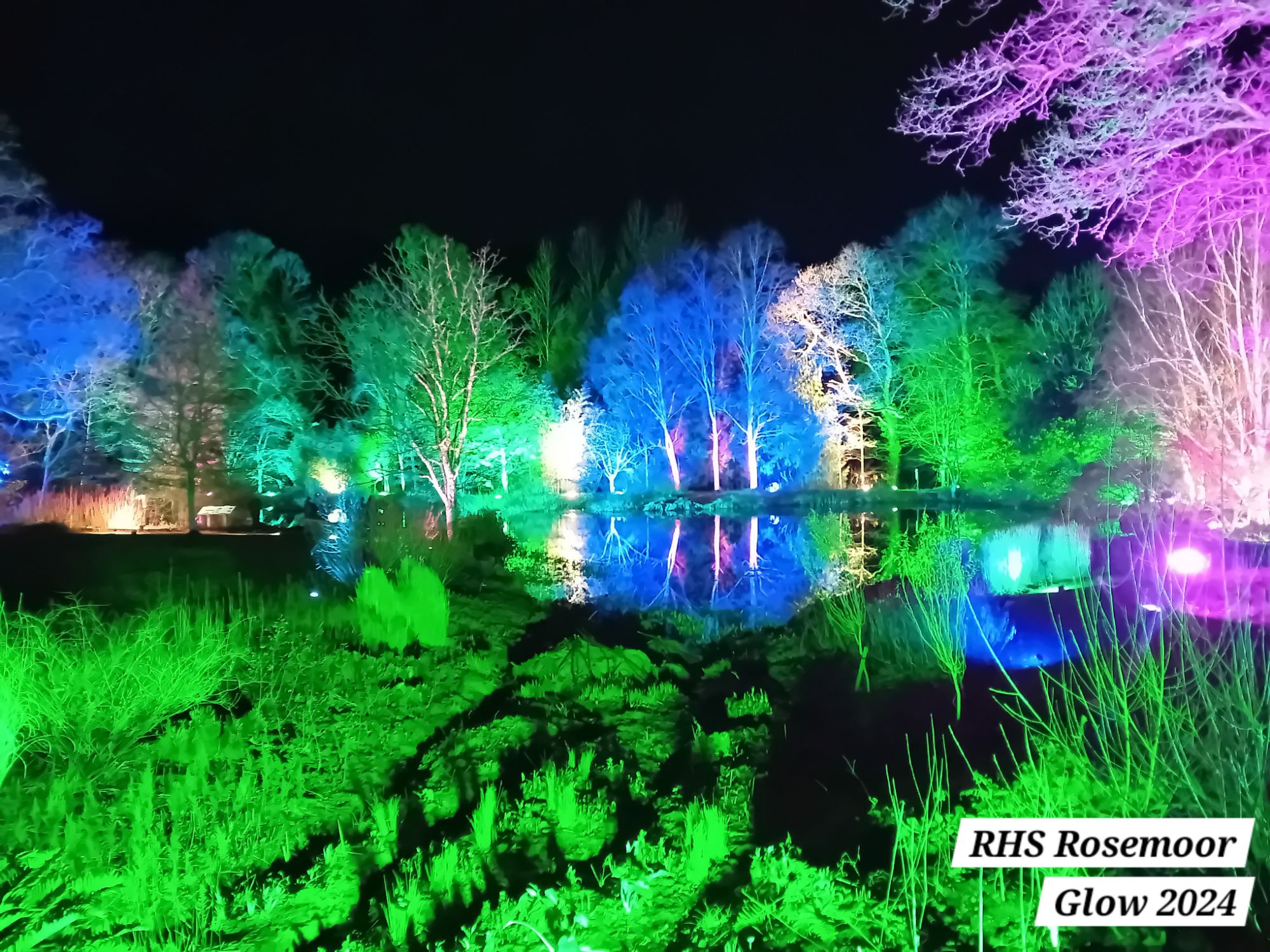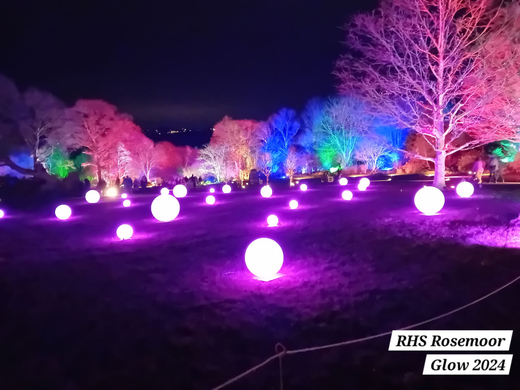 You can watch video footage of the Glow light display on my Facebook page: RHS Rosemoor Christmas reel (Don’t forget to unmute the video in the top right of the video screen!)