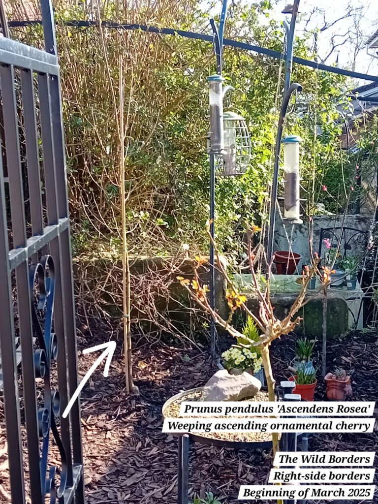 Both of these trees have been planted next to the bird feeders and they should eventually be mature enough to hold the feeders. The birds in our garden have already taken to perching on the trees before going to the feeders.
