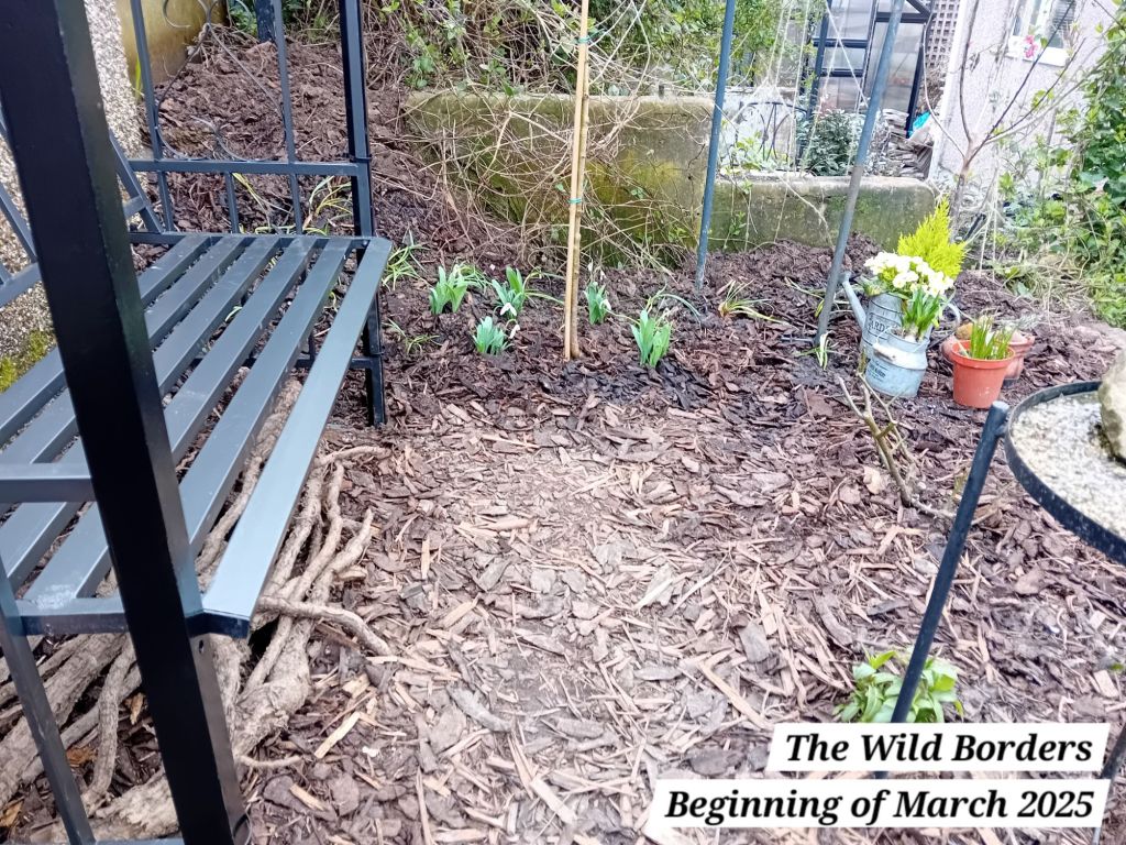 This is a semi-shady part of the right-side border and I think the snowdrops are going to naturalise very nicely in the area beneath the trees and on the bank: