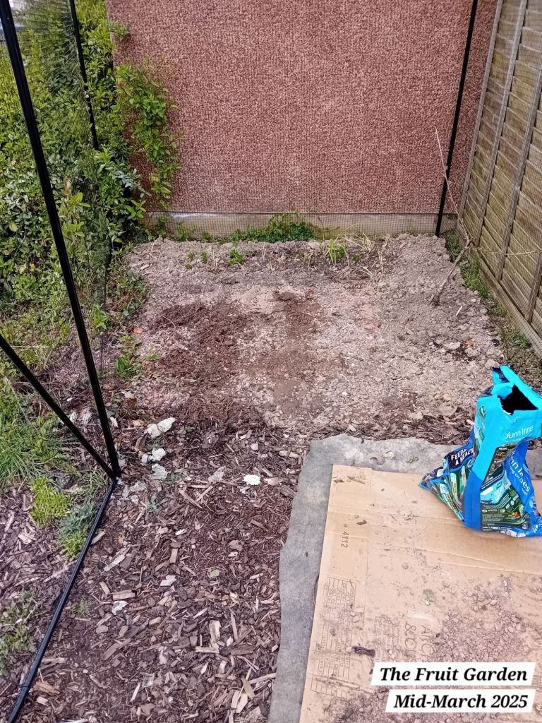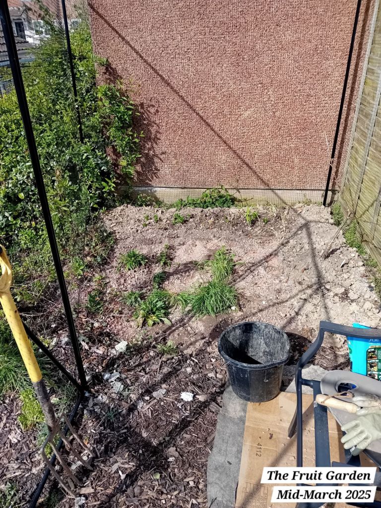 Over the last weekend, the Mr removed the remaining nine paving slabs that made up a small patio area in one side of The Fruit Garden.