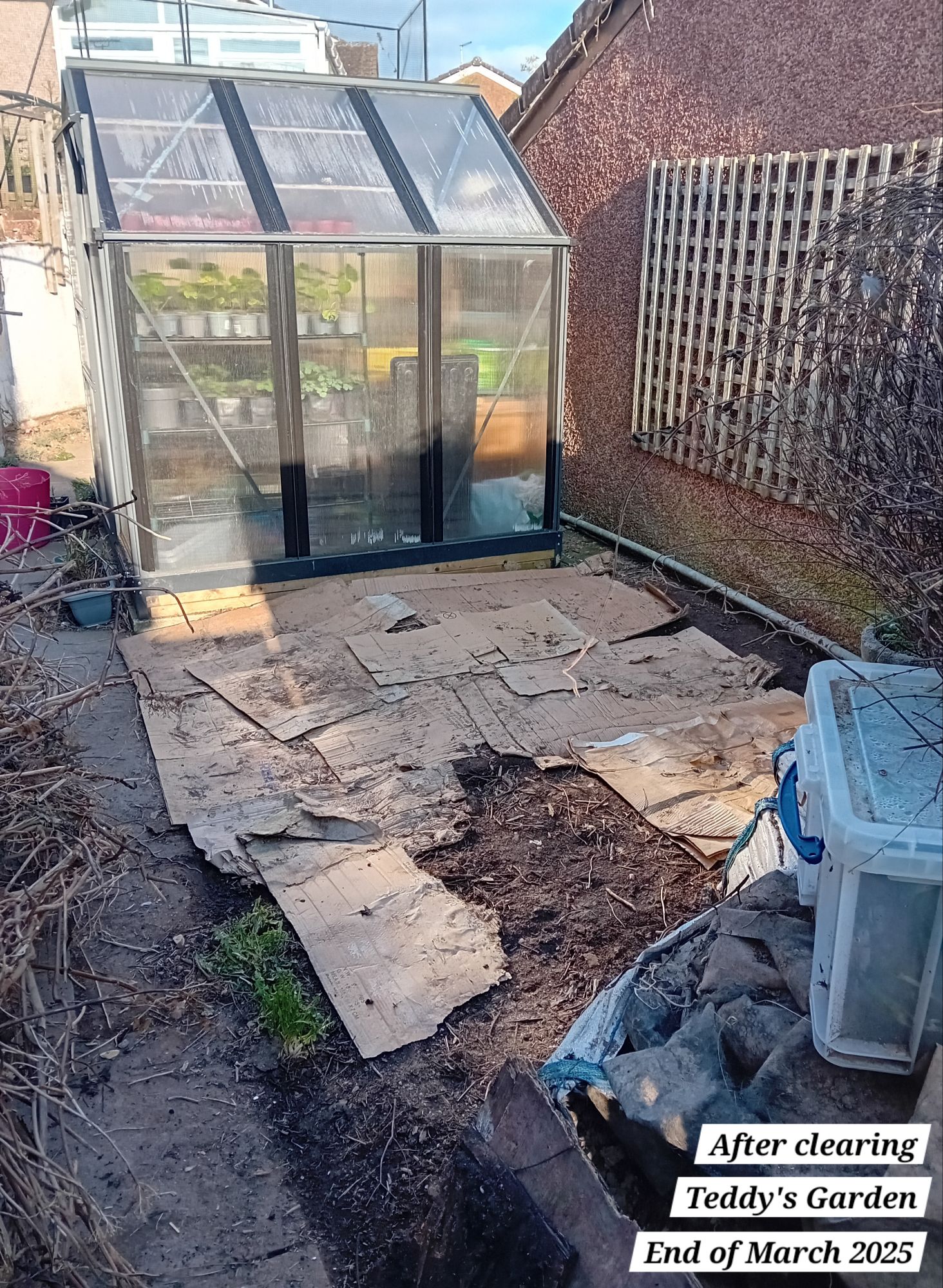 In the last two weeks, the Mr and I then moved all of the old compost heap in Teddy’s Garden over to the new compost bays in The Woodland Garden. Here was the old compost bay before and after clearing: