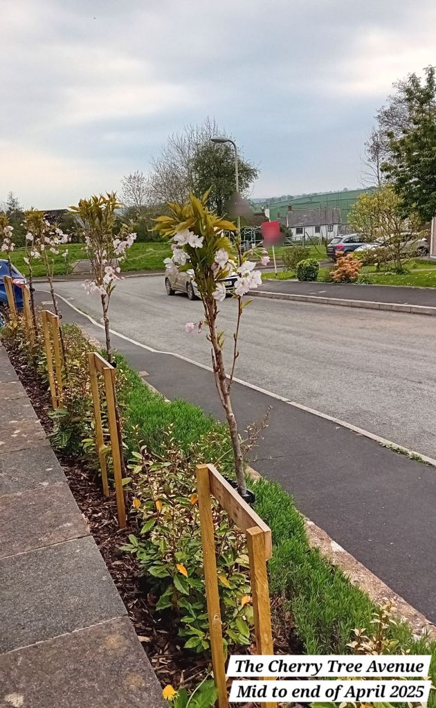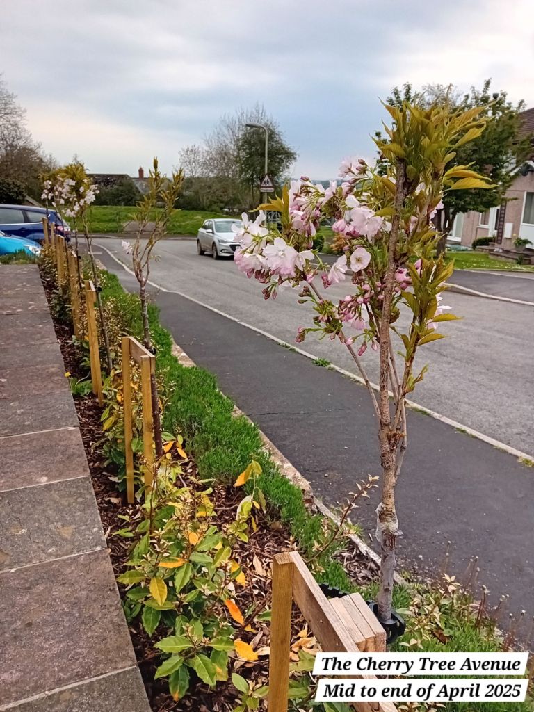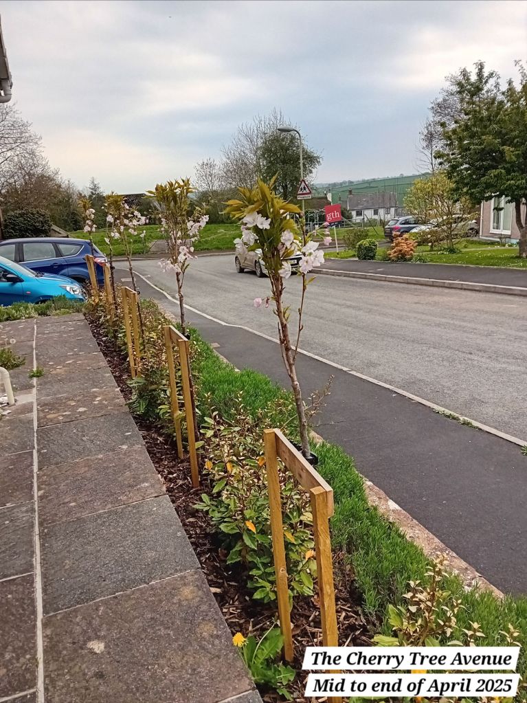 Today’s post is about the nine cherry tree blossom trees that I planted in Winter this year in one of our front gardens, The Cherry Tree Avenue. I did not expect to see much blossom this year, but as you will see from the photos, they have not disappointed, even in their first year here!