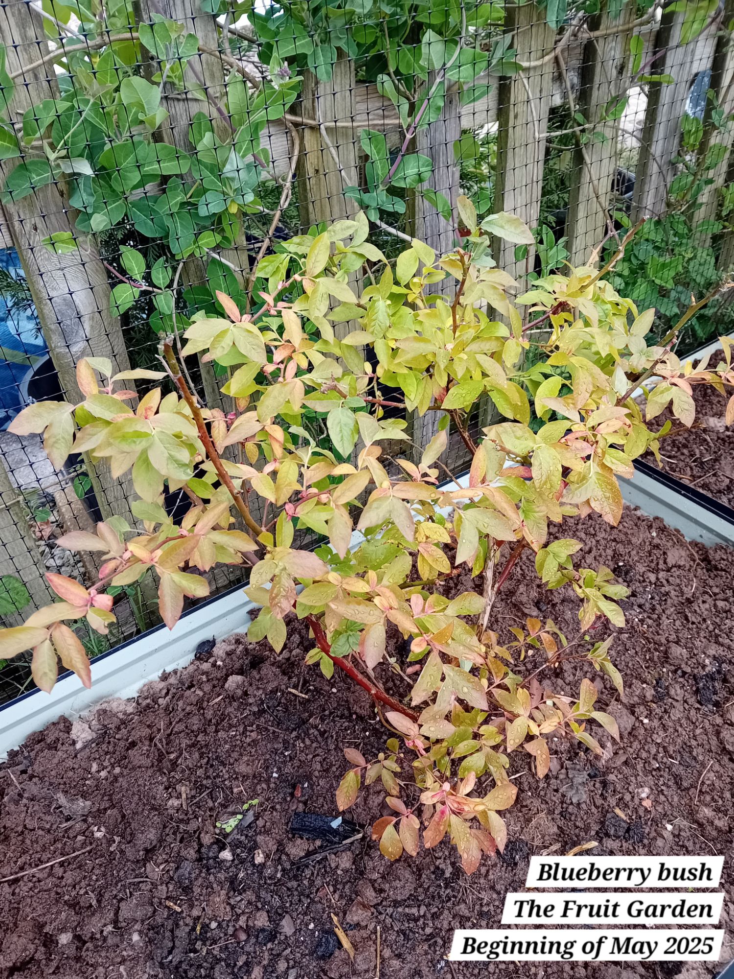 This variety of blueberry is a bushy shrub, that according to the plant label can reach a height and width of 1.25cm, but I have read information online that that states they may grow up to 2 metres in height and width. I don’t mind these bushes growing taller, but I will have to prune their width if they grow too much. I am aware that you can train blueberries vertically, so that is always an option to experiment with if needed! These ideally want a semi-shaded position; as other plants in the opposing beds grow, they will eventually provide some shade for the blueberries.